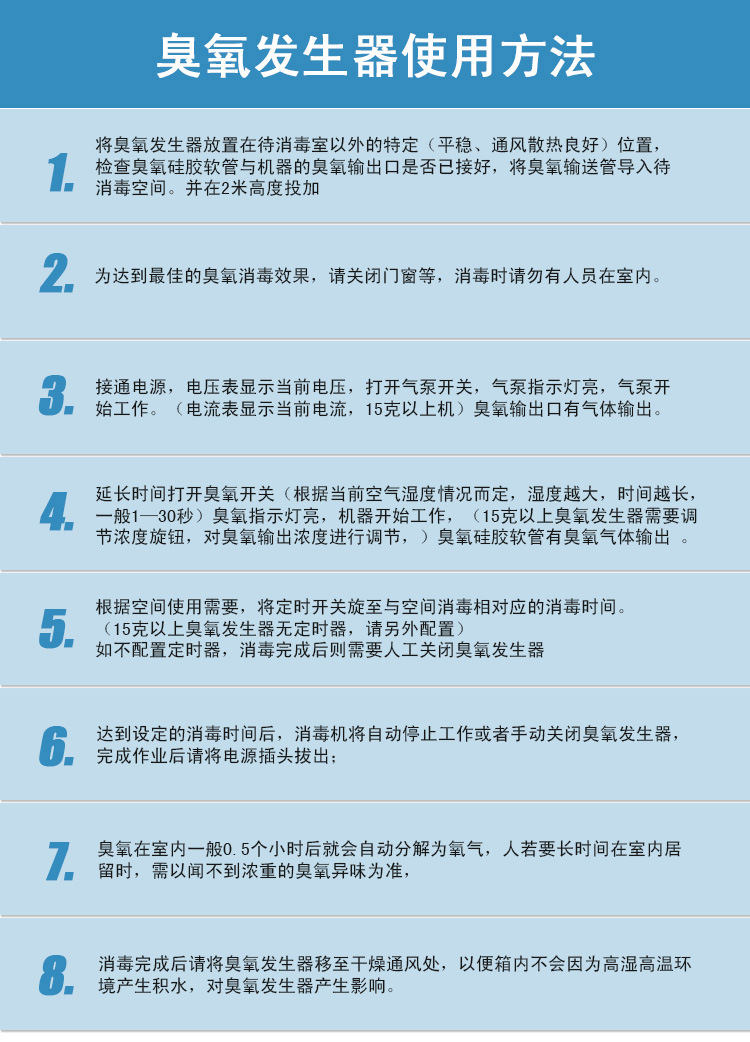 廣州佳環(huán)電器科技有限公司是專(zhuān)業(yè)從事臭氧系列設(shè)備的研發(fā)、生產(chǎn)及銷(xiāo)售為一體的臭氧發(fā)生器廠家。公司成立于2007年,經(jīng)過(guò)多年發(fā)展,現(xiàn)已成為臭氧行業(yè)的領(lǐng)先企業(yè),以雄厚的技術(shù)實(shí)力和豐富的臭氧行業(yè)經(jīng)驗(yàn)為依托,不斷的開(kāi)發(fā)出新型臭氧產(chǎn)品面向市場(chǎng)。我們以臭氧發(fā)生器技術(shù)為核心,制造出多種規(guī)格臭氧產(chǎn)品,包括空氣源臭氧消毒機(jī)、氧氣源高濃度臭氧一體機(jī)、汽車(chē)消毒機(jī)、高濃度臭氧水一體機(jī)、臭氧消毒柜、畜禽養(yǎng)殖儀等大中小臭氧系列產(chǎn)品。 專(zhuān)業(yè)服務(wù)于食品殺菌,食品安全,制藥殺菌,泳池水消毒,海洋館,污水脫色,降COD,BOD,化工氧化,食用菌栽培滅菌技術(shù),飲水安全、環(huán)保等十幾個(gè)行業(yè)的各種需求。佳環(huán)電器科技臭氧技術(shù),臭氧發(fā)生器專(zhuān)用制氧技術(shù),臭氧發(fā)生器水氣混合技術(shù),臭氧機(jī)檢測(cè)技術(shù),臭氧機(jī)水處理技術(shù),臭氧行業(yè)應(yīng)用技術(shù)等領(lǐng)域,在國(guó)內(nèi)均處于領(lǐng)先地位。我公司臭氧設(shè)備以技術(shù)先進(jìn),性?xún)r(jià)比優(yōu)勢(shì)而在行業(yè)上處于有力競(jìng)爭(zhēng)地位。 自創(chuàng)業(yè)以來(lái),公司不論是對(duì)社會(huì)、對(duì)客戶(hù)、對(duì)員工皆秉持誠(chéng)意、正心、篤實(shí)、守法的態(tài)度來(lái)經(jīng)營(yíng)企業(yè),建立起一貫良好的企業(yè)形象。誠(chéng)信是寶貴的無(wú)形資產(chǎn),是立業(yè)之本,以誠(chéng)心為 已、服務(wù)為先、顧客為尊、想顧客之所想。 佳環(huán)臭氧發(fā)生器,臭氧消毒三大好處: 佳環(huán)臭氧發(fā)生器,運(yùn)用范圍: 各區(qū)域使用介紹: 企業(yè)、學(xué)校等餐館臭氧應(yīng)用: 由于人員較多,一旦出現(xiàn)事故就非常嚴(yán)重。而且也確實(shí)許多地方和學(xué)校發(fā)生了這些群體性的食物中毒和腸道傳染病等事件。這一系列事件的發(fā)生,嚴(yán)重影響了員工和學(xué)生的身心健康及正常秩序,也暴露對(duì)食品安全管理工作存在的漏洞、隱患和忽視。因而需要對(duì)食堂的管理和操作進(jìn)行規(guī)范,同時(shí)需要對(duì)食品原材、廚具、餐具及食堂進(jìn)行消毒,而傳統(tǒng)的消毒方法容易造成二次污染和殘留,因而越來(lái)越多的地方采用臭氧消毒殺菌。 要保證這些集體食堂的食品安全,可針對(duì)以下方面進(jìn)行操作: 1、對(duì)食堂空間的殺菌消毒。 2、對(duì)食堂的工作服、廚具、餐具、原材等的殺菌消毒。 3、對(duì)食堂使用的水殺菌消毒等。 而通過(guò)臭氧發(fā)生器能很好的滿足這些要求,臭氧發(fā)生器具有以下有別于傳統(tǒng)殺菌方法的優(yōu)點(diǎn)。 1、環(huán)保潔凈,無(wú)二次污染,臭氧消毒產(chǎn)物無(wú)害且自身不對(duì)環(huán)境產(chǎn)生污染,在環(huán)境中能自然分解成氧氣,因而是一種潔凈的凈化技術(shù)。 2、高效迅速,短時(shí)間見(jiàn)效,能有效殺滅各種微生物,趕走各類(lèi)蚊蟲(chóng)鼠蟻,有限扼制傳播途徑和傳染源。 3、適應(yīng)性強(qiáng),隨地即可用,就地取材產(chǎn)生高濃度臭氧且操作方便。 食品行業(yè)臭氧應(yīng)用: 臭氧是強(qiáng)氧化劑,能有效氧化各類(lèi)物質(zhì),殺滅各類(lèi)微生物。還能脫色、去臭,對(duì)于其他方法難分解的物質(zhì)也變成容易分解的物質(zhì)。因此,在生產(chǎn)生活的用水和空間凈化處理方面,臭氧的作用顯著、使用廣泛,能應(yīng)用于處理各類(lèi)原水、廢水等,保障生產(chǎn)生活的正常進(jìn)行。 臭氧的滅菌機(jī)制和滅菌特性 臭氧能作用于細(xì)菌和病毒等的細(xì)胞壁和細(xì)胞膜,作用于其脂質(zhì)(類(lèi)脂化合物)的雙鍵,將其氧化斷鏈從而將細(xì)胞膜、細(xì)胞質(zhì)被破壞,從而達(dá)到滅菌的效果。 化妝品容器的消毒滅菌: ? 對(duì)管道容器做消毒滅菌的優(yōu)點(diǎn)非常明顯,臭氧發(fā)生器可以流動(dòng)使用,對(duì)不同的罐進(jìn)行消毒,每個(gè)生產(chǎn)單元在每次換料前,都可以及時(shí)得到消毒,使用效率很高,很方便,不要用那么多的酒精,不要用氮?dú)猓膊灰酶邏赫魵?。所以在化妝品廠、食品廠得到了廣泛的推廣。 醫(yī)療衛(wèi)生領(lǐng)域:醫(yī)院是治療疾病的地方,但是由于到醫(yī)院就診的人很大部分是危重患者,其炎癥正處于高峰時(shí)期,來(lái)自病人身上的有害病菌極易散發(fā)于空氣中。因此,醫(yī)院又是容易感染疾病的場(chǎng)所?,F(xiàn)在,由于到醫(yī)院就診引起交叉感染的事已司空見(jiàn)慣。醫(yī)院手術(shù)和護(hù)理操作前大夫或護(hù)士的雙手及手術(shù)器具的消毒問(wèn)題也是亟待解決的課題之一。具有高效、迅速殺菌作用的臭氧在醫(yī)院環(huán)境消毒、術(shù)前消毒等方面大有用武之地。比如,日本科學(xué)家就研究過(guò)用于醫(yī)院的臭氧水消毒法。據(jù)其研究結(jié)果,用臭氧水對(duì)醫(yī)院手術(shù)前醫(yī)生、護(hù)士的雙手消毒,可殺死所有細(xì)菌,不僅時(shí)間極短,而且其消毒效果也是其他碘類(lèi)消毒劑無(wú)法比擬的。傳統(tǒng)進(jìn)行同樣的消毒操作至少需要10分鐘。在醫(yī)院中最易引起感染